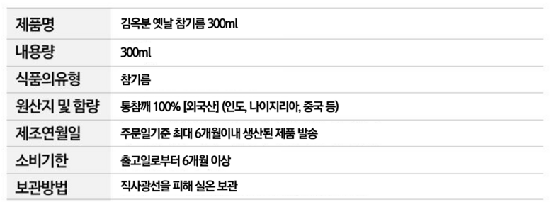 | 제조연월일, 소비기한 또는 품질유지기한 | 상품 상세페이지 참조 | 세부 품목군별 표시사항 | 상품 상세페이지 참조 |