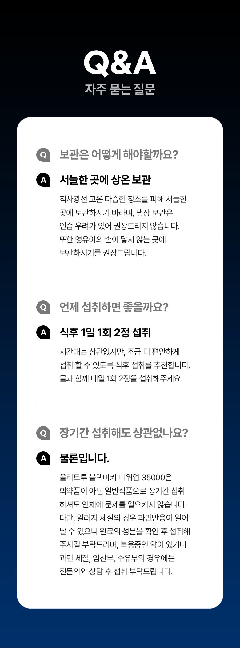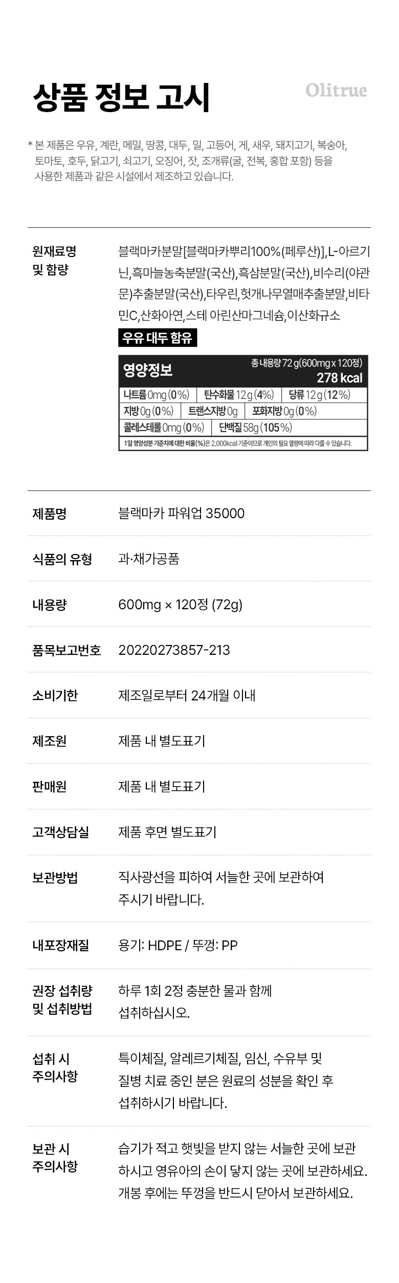 | 제품명 | 올리트루 블랙마카 파워업 35000 | 제조업소의 명칭과 소재지 | 올리트루 협력사 |
