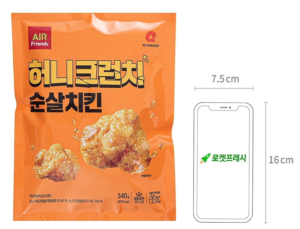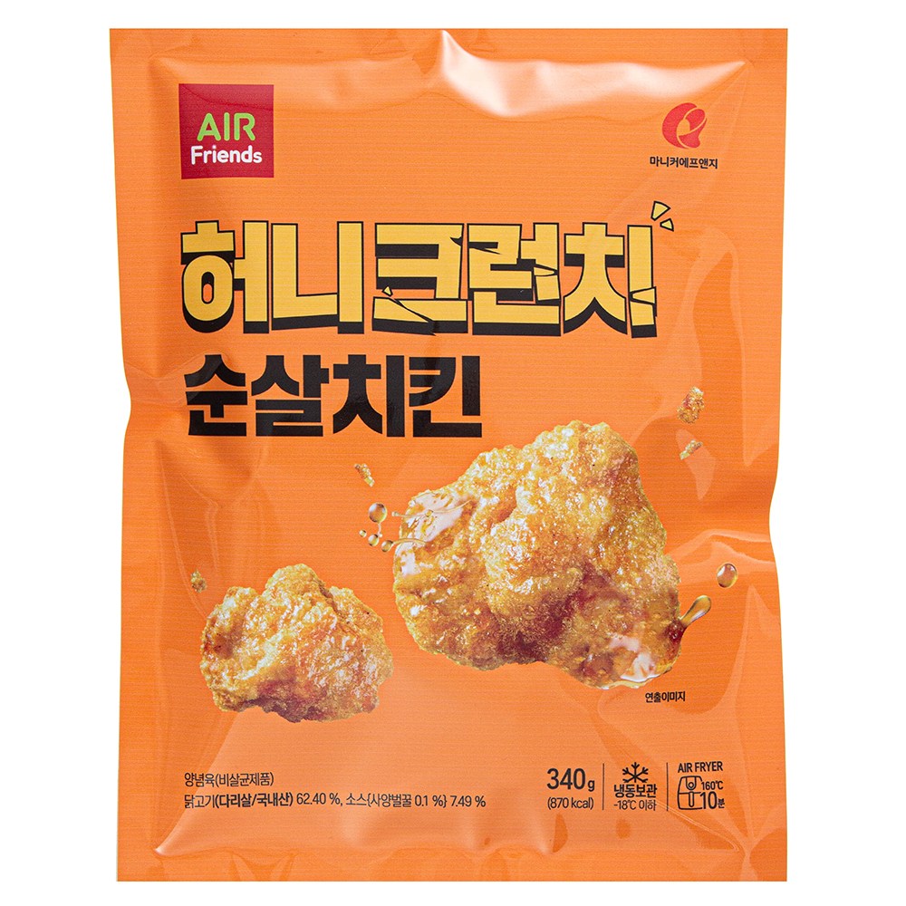 겉은 바삭하고 속은 촉촉한 허니크런치 순살치킨이에요. 닭다리살의 야들야들하고 쫄깃한 식감이 입맛을 사로잡지요. 소스를 알맞게 입혀 달콤 짭조름한 풍미 또한 매력적이랍니다. 전자레인지나 에어프라이어로 간편하게 조리해, 든든한 간식거리로 즐겨보세요.