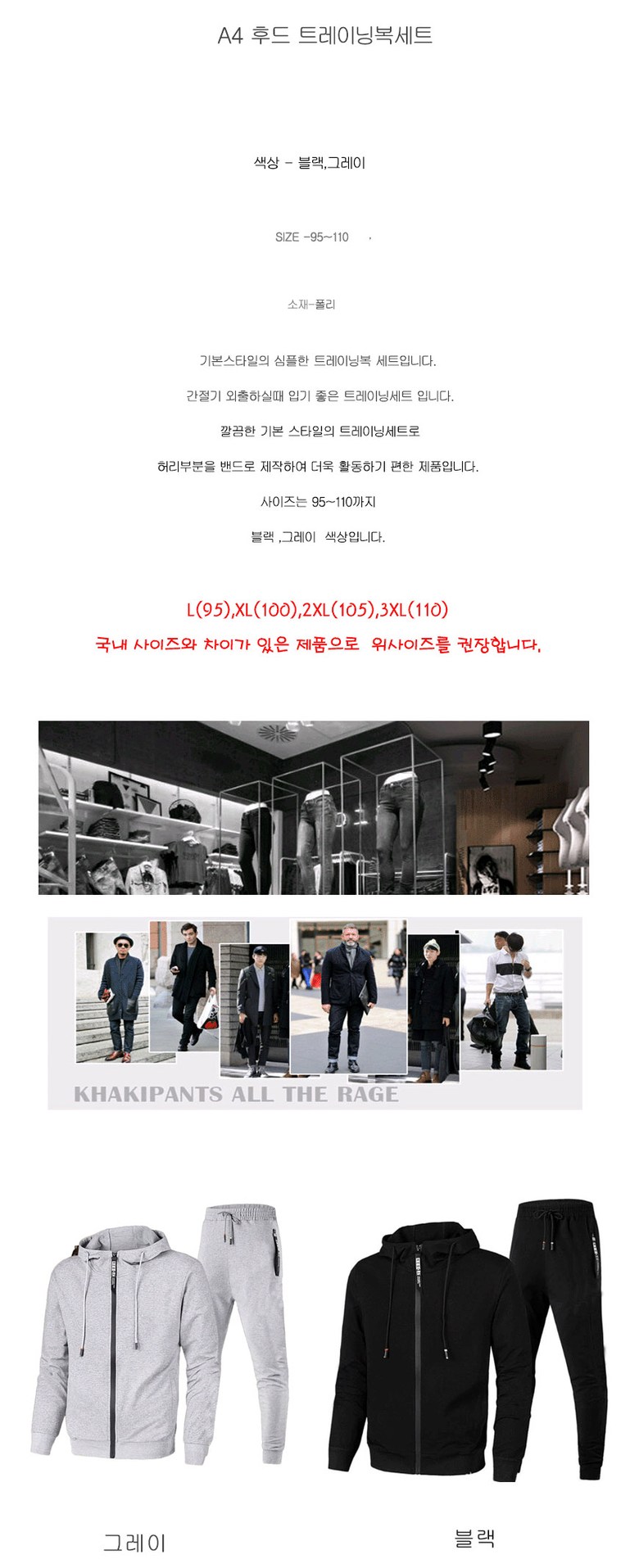 예스라인 A4 후드 트레이닝복 세트 집업트레이닝복세트 봄가을 남성용