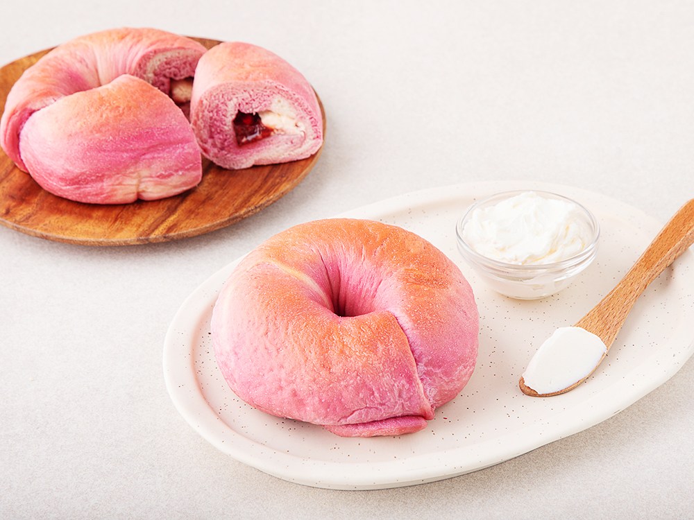 빛깔이 곱고 맛도 달콤해, 디저트로 손색없는 딸기 러버 베이글이에요. 고소한 크림치즈와 새콤달콤한 딸기잼을 품어 먹는 재미가 쏠쏠하지요. 밀도가 촘촘해 쫄깃쫄깃한 식감이 일품이랍니다. 취향에 맞는 음료를 곁들여 근사한 홈카페를 완성해보세요.