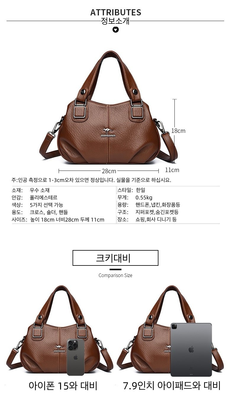 여성 가죽 가방 숄더백 핸드백 직장인 데일리 크로스백 토트백