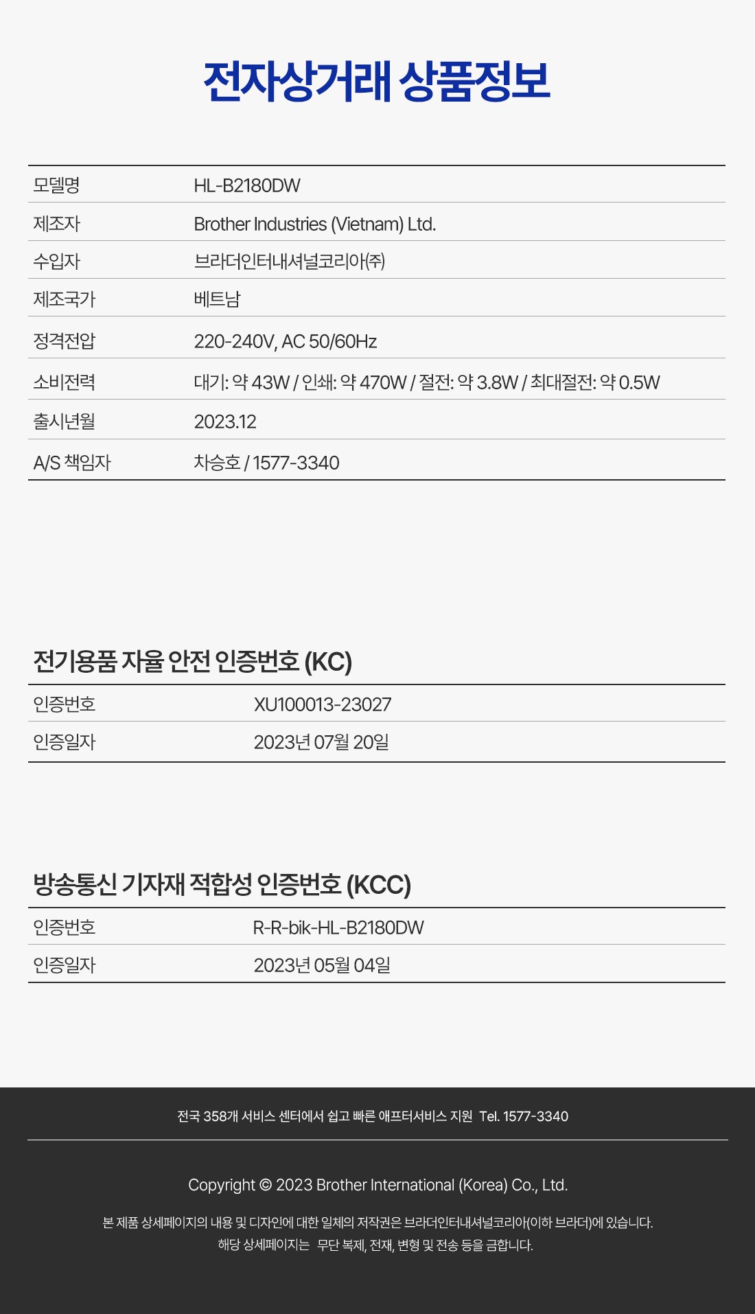 | 품명 및 모델명 | 브라더 토너세이브 흑백 레이저 프린터, HL-B2180DW | KC 인증정보 | XU100013-23027AR-R-bik-HL-B2180DW |