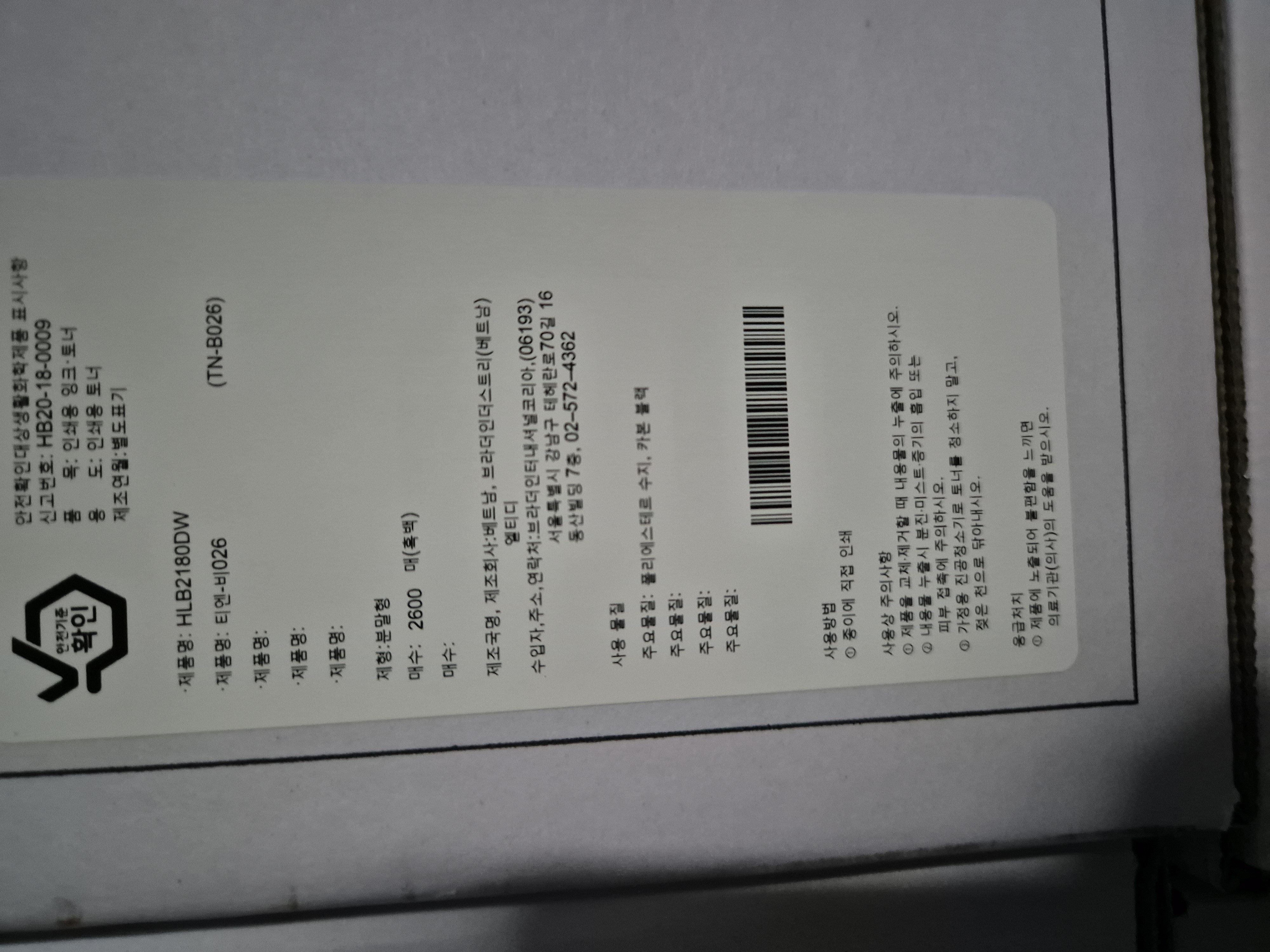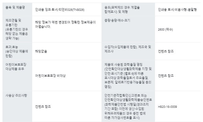 - 호환 잉크/토너: TN-B026