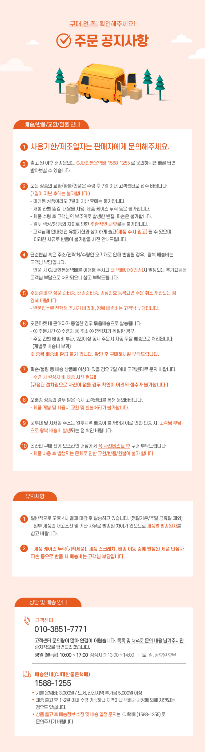- ㆍ교환/반품에 관한 일반적인 사항은 판매자가 제시사항보다 관계법령이 우선합니다.