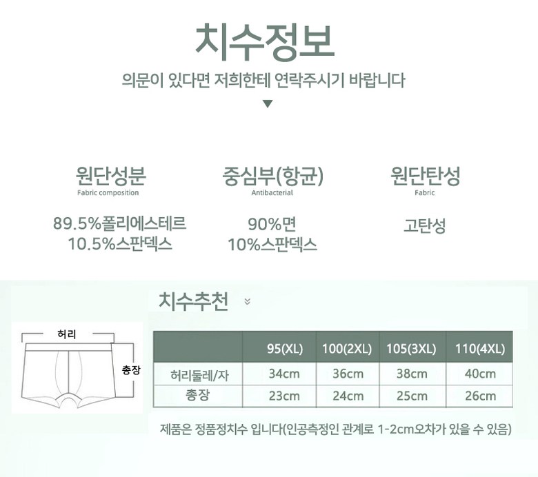 | 치수 | XL(95),2XL(100),3XL(105),4XL(110) | 제조자(수입자) | 주식회사 젯트알컴 |
