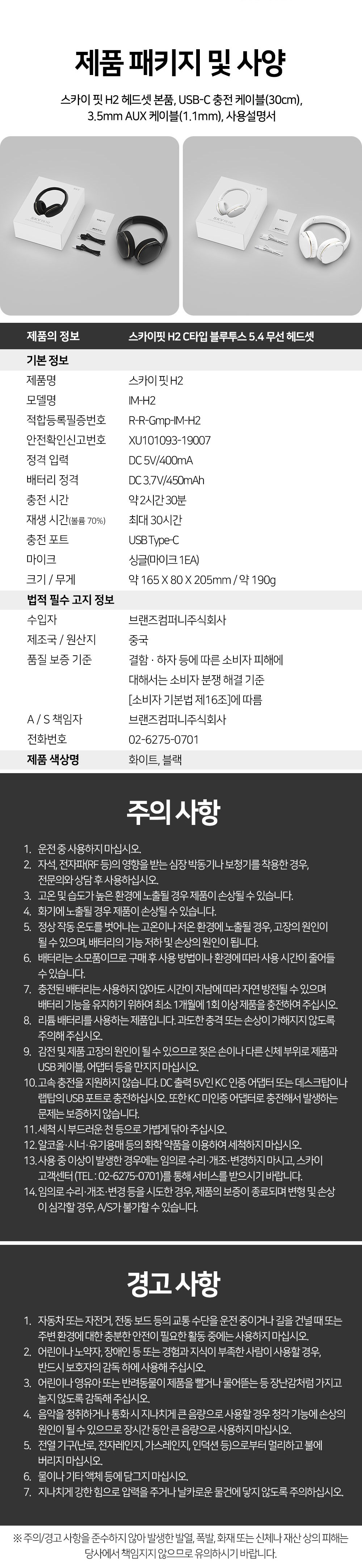 | 품명 및 모델명 | (리뉴얼 전) SKY 핏 H2 C타입 블루투스 5.1 무선 헤드셋 / IM-H2 (리뉴얼 후) SKY 핏 H2 C타입 블루투스 5.4 무선 헤드셋 / IM-H2 | KC 인증정보 | 본품 : R-R-Gmp-IM-H2, 내장배터리 : XU101093-19007C |