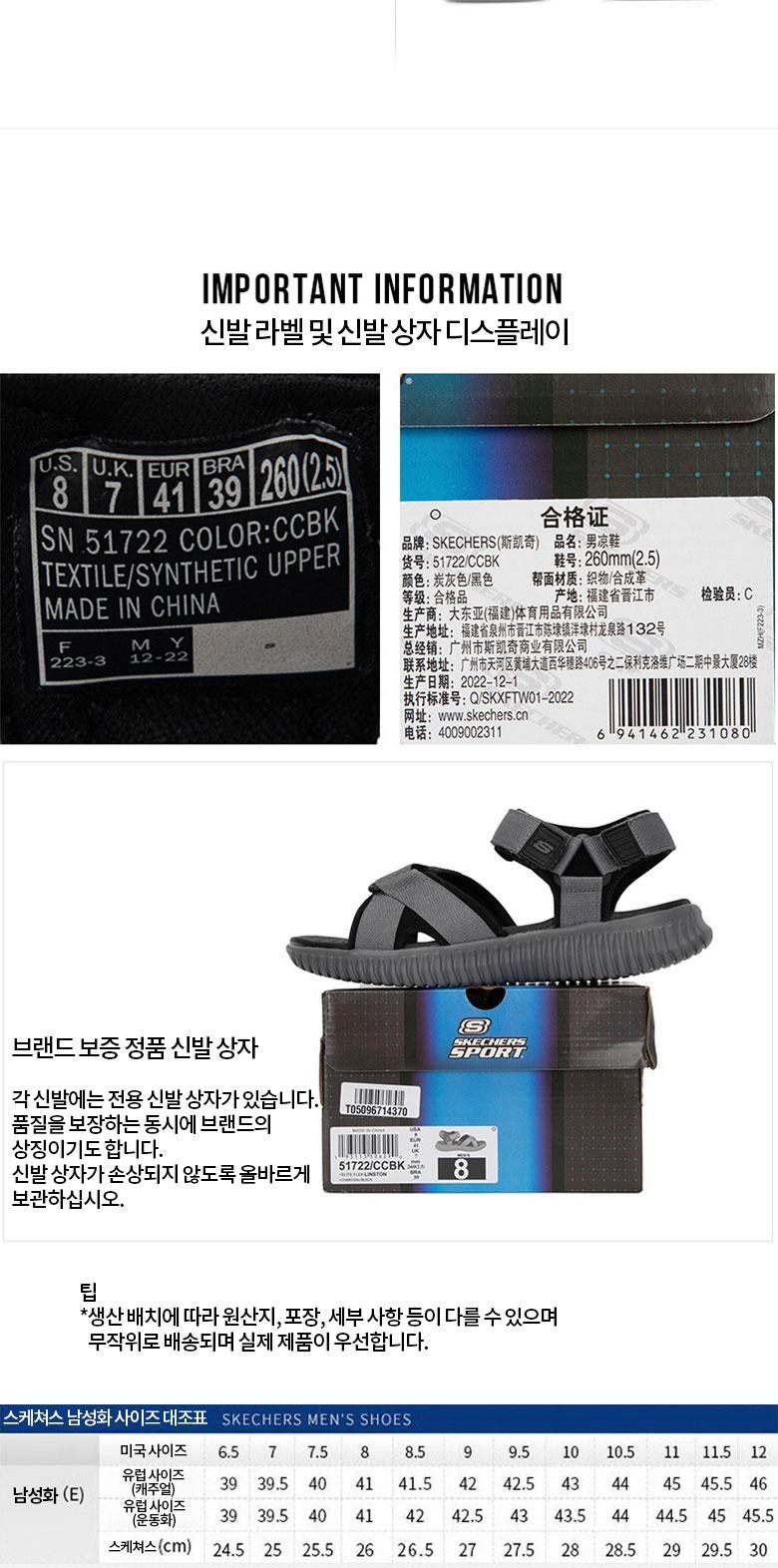 스케쳐스 남성 스포츠 캐주얼 오픈 토 샌들 51722