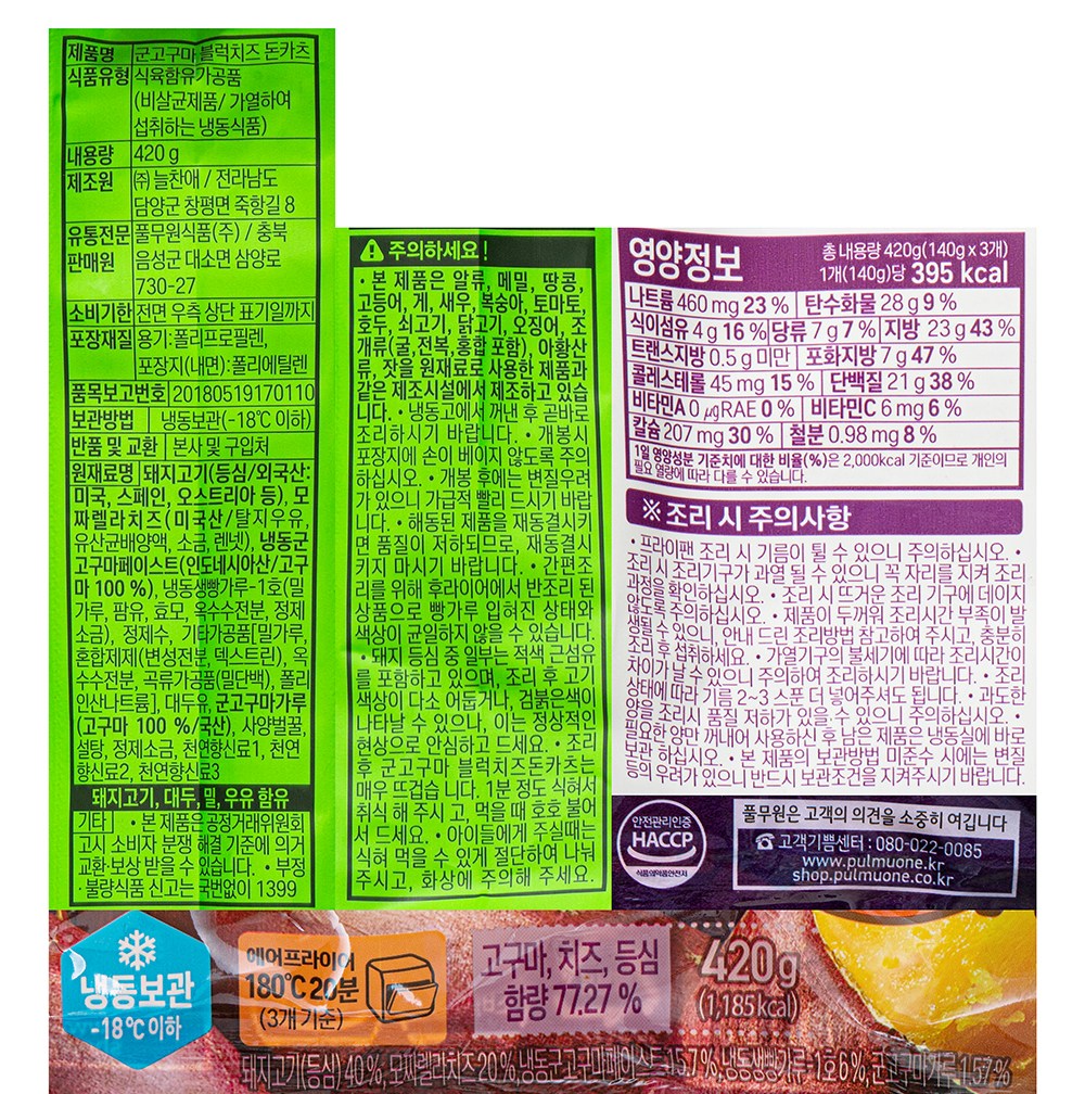 두 가지 매력을 즐길 수 있는 군고구마 치즈 돈카츠예요. 돼지고기 등심이 모짜렐라치즈와 달콤한 속 재료를 감싸고 있어 가장자리 끝까지 맛있게 즐길 수 있답니다. 에어프라이어나 프라이팬으로 간편하게 조리해 식탁을 든든하게 채워보세요.