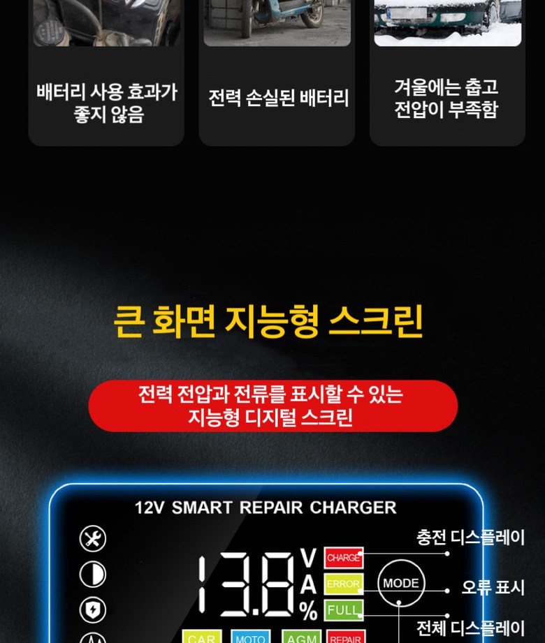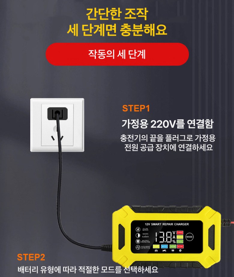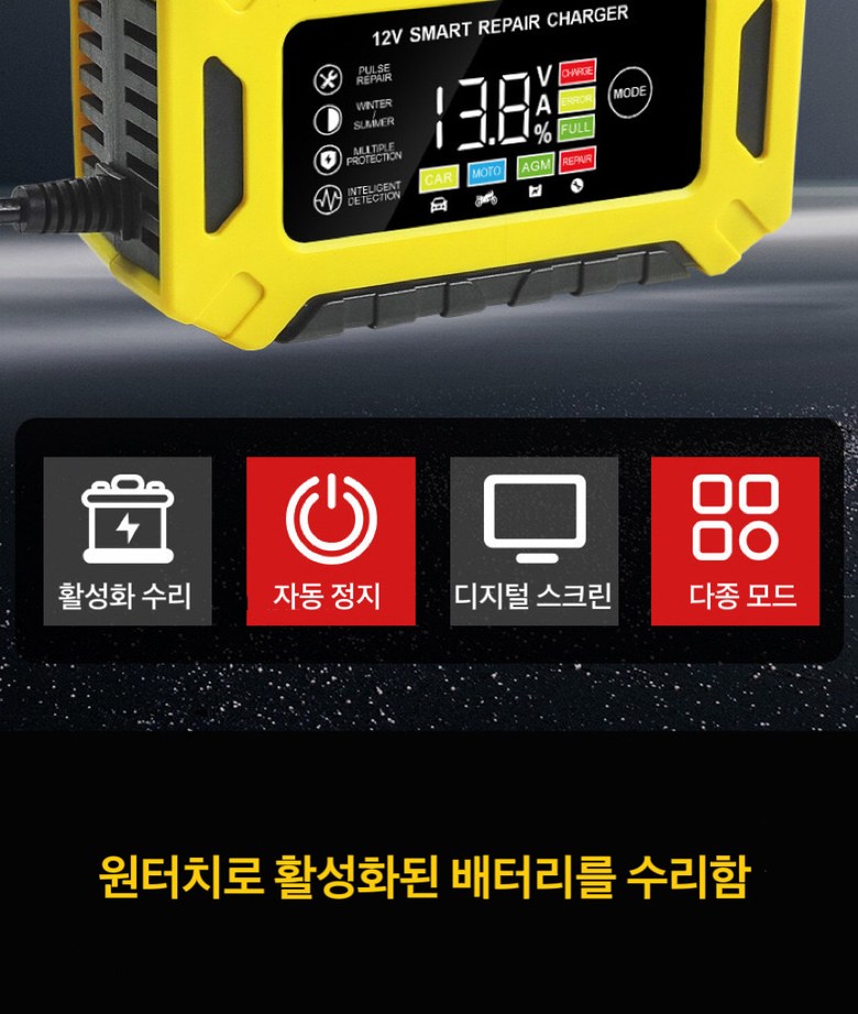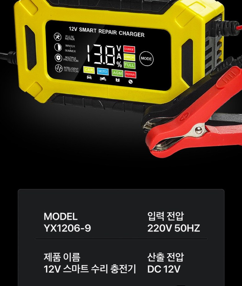 | 품명 및 모델명 | 자동차 오토바이 배터리 충전기 | 동일모델 출시년월 | 상품 상세페이지 참조 |