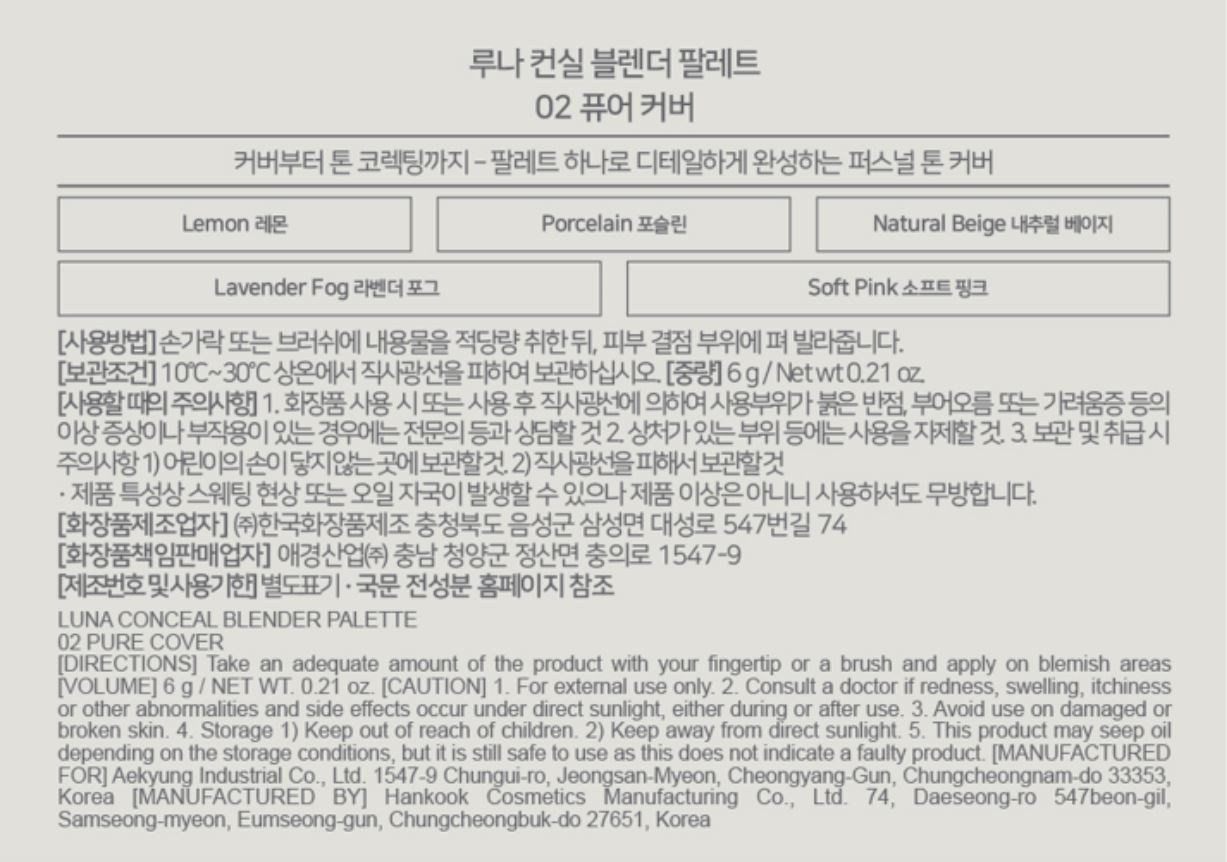 | 화장품제조업자, 화장품책임판매업자 및 맞춤형화장품판매업자 | 컨텐츠참조 | 제조국 | 대한민국 |