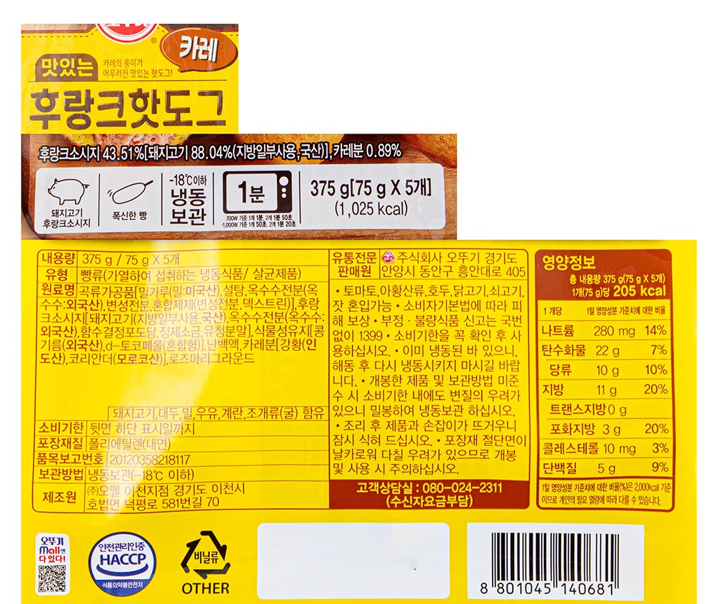 | 제품명 | 맛있는 후랑크 핫도그 카레 | 식품의 유형 | 컨텐츠 참조 |