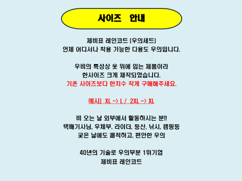 - ㆍ교환/반품에 관한 일반적인 사항은 판매자가 제시사항보다 관계법령이 우선합니다.