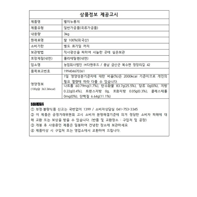 | 제품명 | 상품 상세페이지 참조 | 식품의 유형 | 상품 상세페이지 참조 |