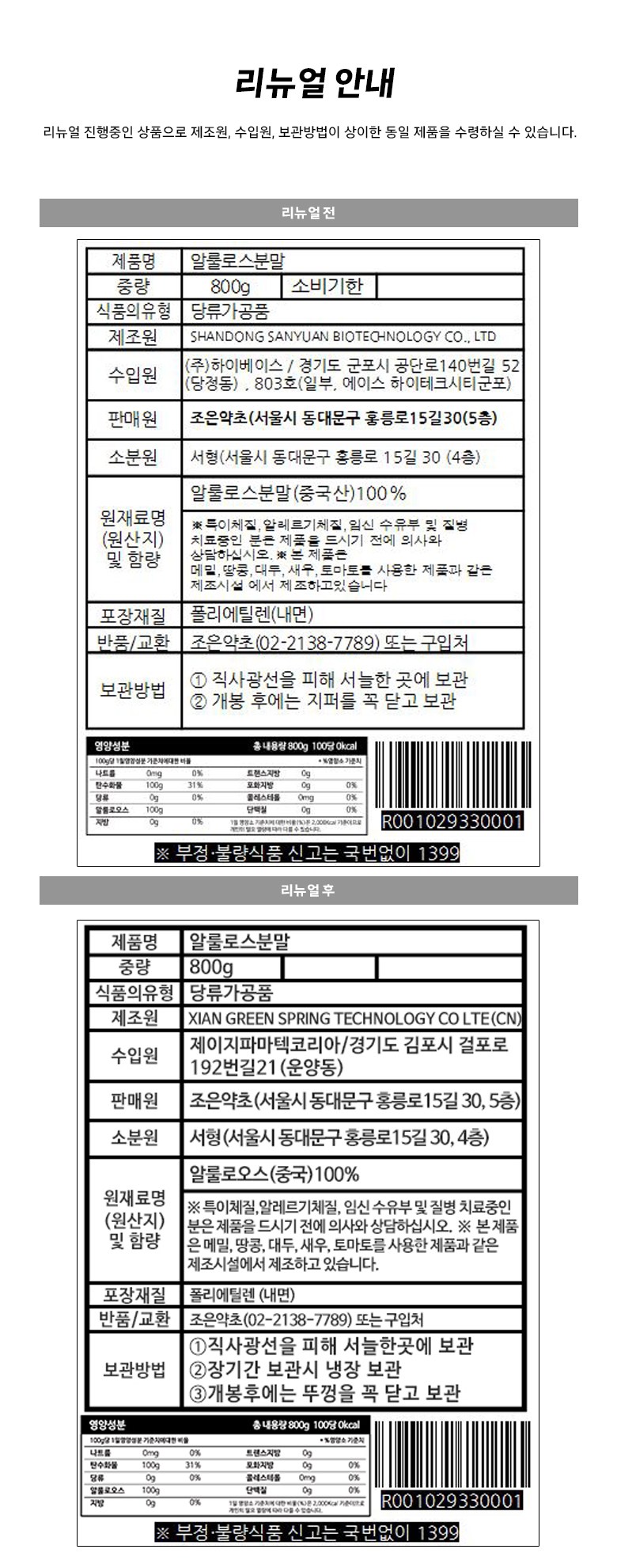| 제품명 | 컨텐츠 참조 | 식품의 유형 | 컨텐츠 참조 |