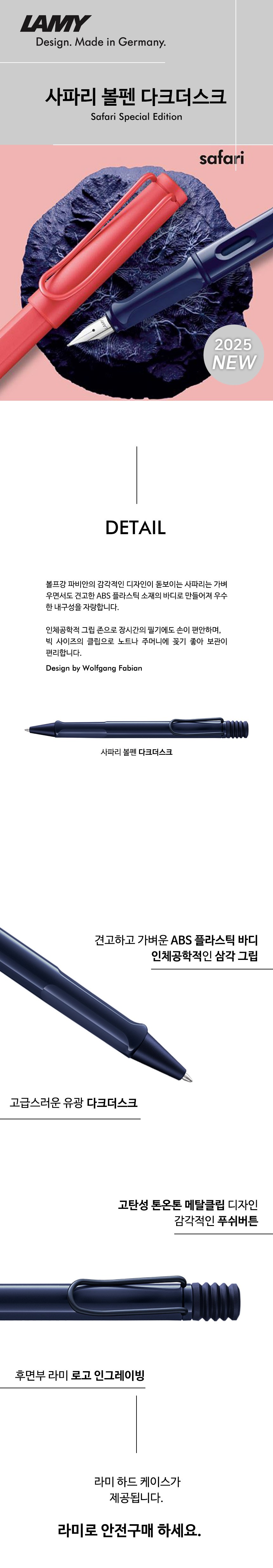 | 품명 및 모델명 | 라미 사파리 볼펜 다크더스크 2025년 다크더스크 1개 | 인증/허가 사항 | 해당없음 |
