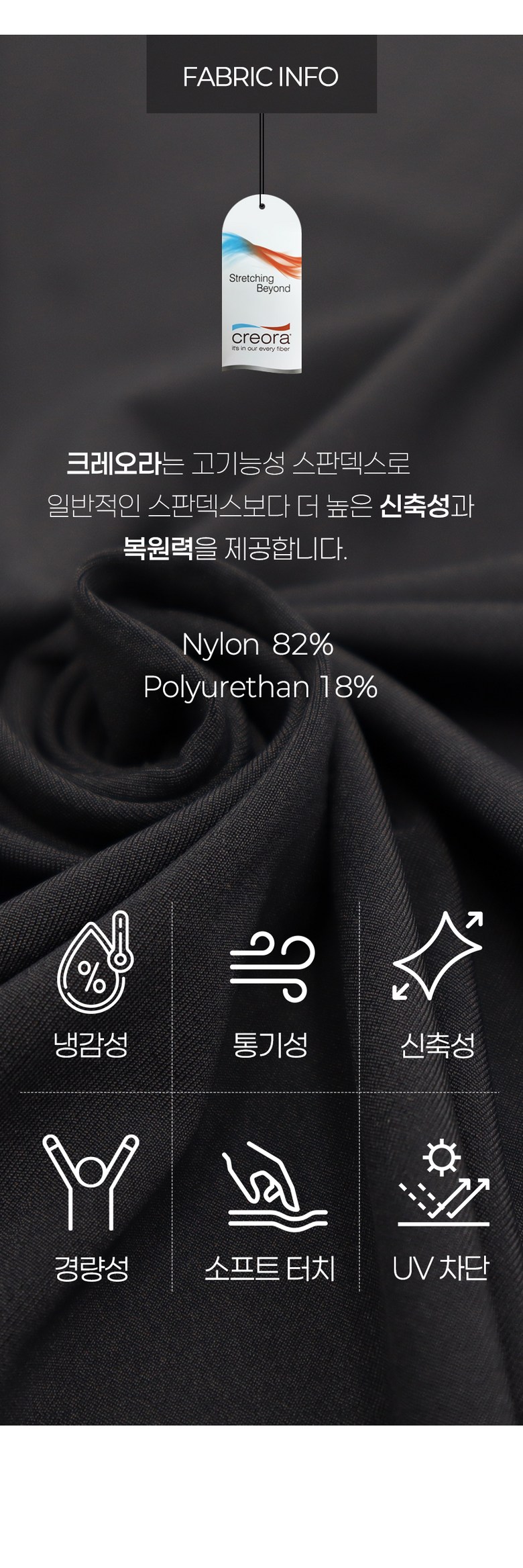 | 제품 소재 | 폴리에스터 61%, 나일론 25%, 폴리우레탄 14% | 색상 | 블랙 |