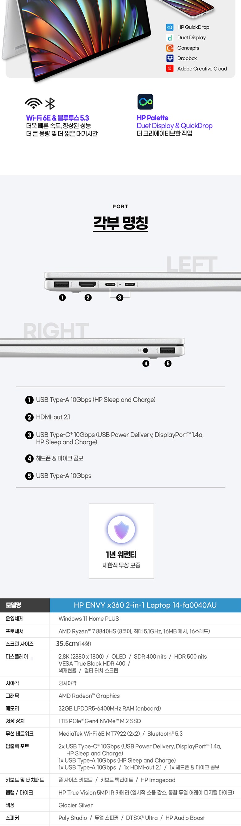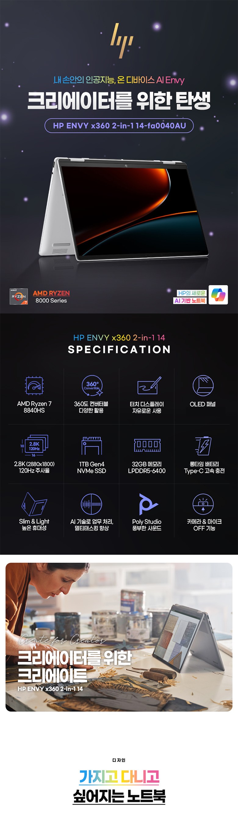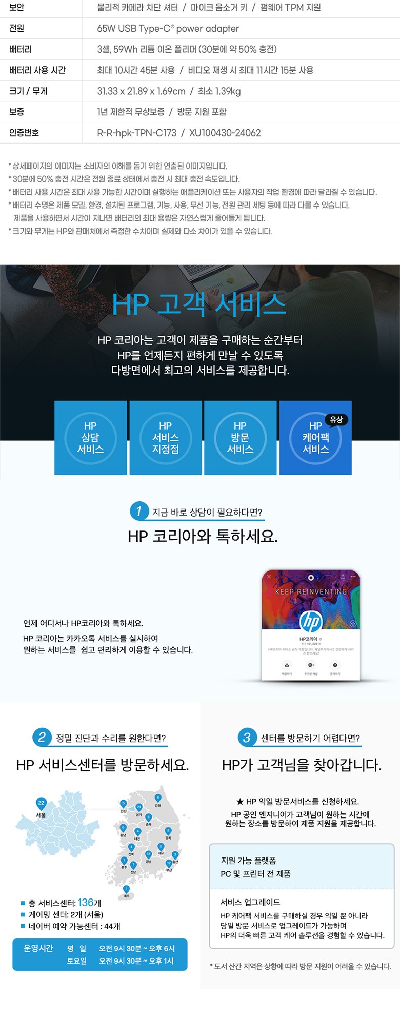 | 품명 및 모델명 | 노트북 컴퓨터 / HP ENVY x360 2-in-1 Laptop 14 | KC 인증정보 | R-R-hpk-TPN-C173, XU100430-24062 |