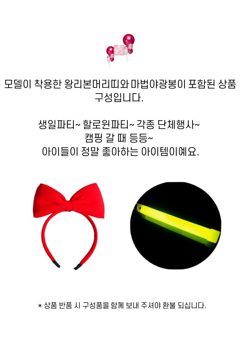 | 치수 | 상품 상세페이지 참조 | 제조자(수입자) | 드레스: 유니엔젤 / 악세사리: 유니엔젤 / 야광봉: HIRO CORPORATION(주식회사 위시) |
