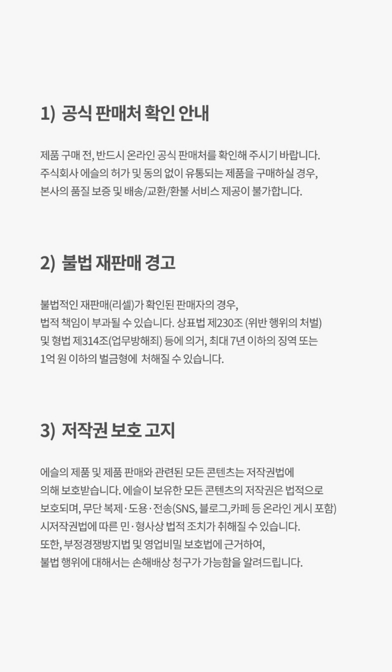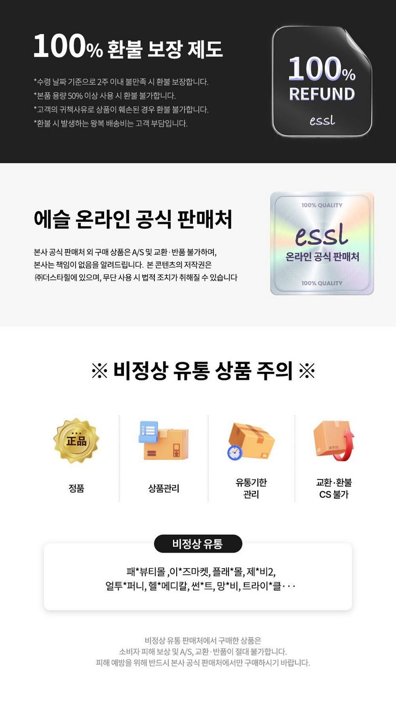 - ㆍ교환/반품에 관한 일반적인 사항은 판매자가 제시사항보다 관계법령이 우선합니다.