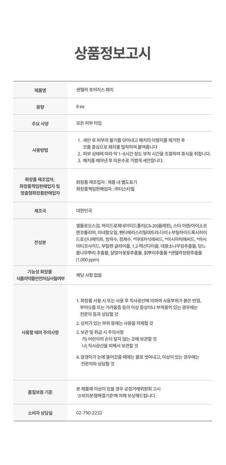 | 화장품제조업자, 화장품책임판매업자 및 맞춤형화장품판매업자 | 상품 상세페이지 참조 | 제조국 | 상품 상세페이지 참조 |