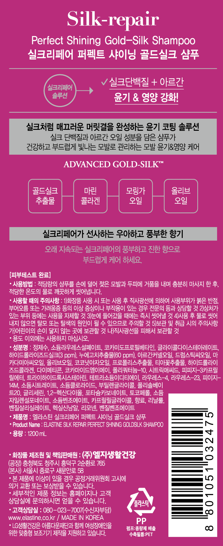 | 용량(중량) | 1200ml | 제품 주요 사양 | 모든 모발용 |