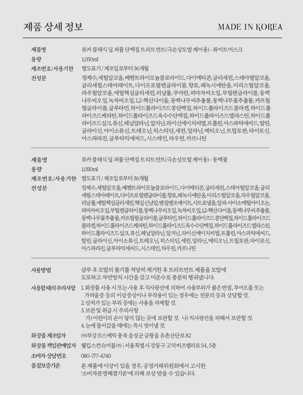| 용량(중량) | 컨텐츠 참조 | 제품 주요 사양 | 모든 모발용 |