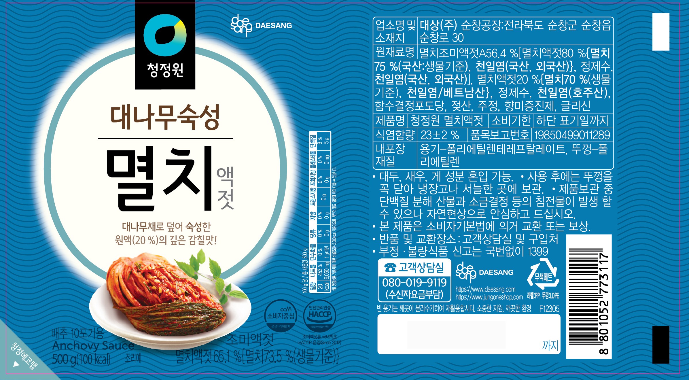 | 제품명 | 청정원 멸치액젓 | 식품의 유형 | 컨텐츠 참조 |