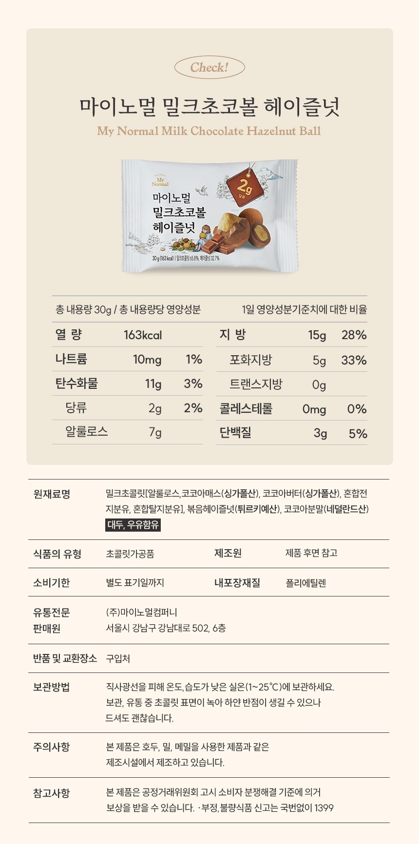 | 제품명 | 마이노멀 밀크초코볼 헤이즐넛 | 식품의 유형 | 컨텐츠 참조 |