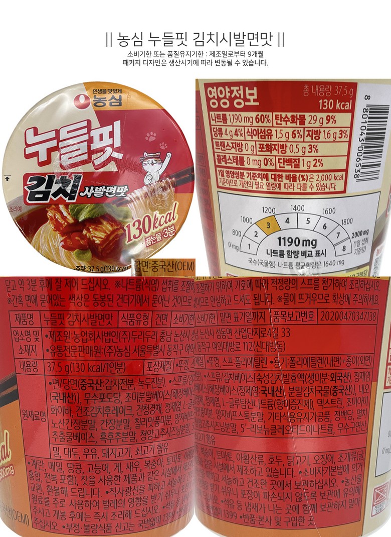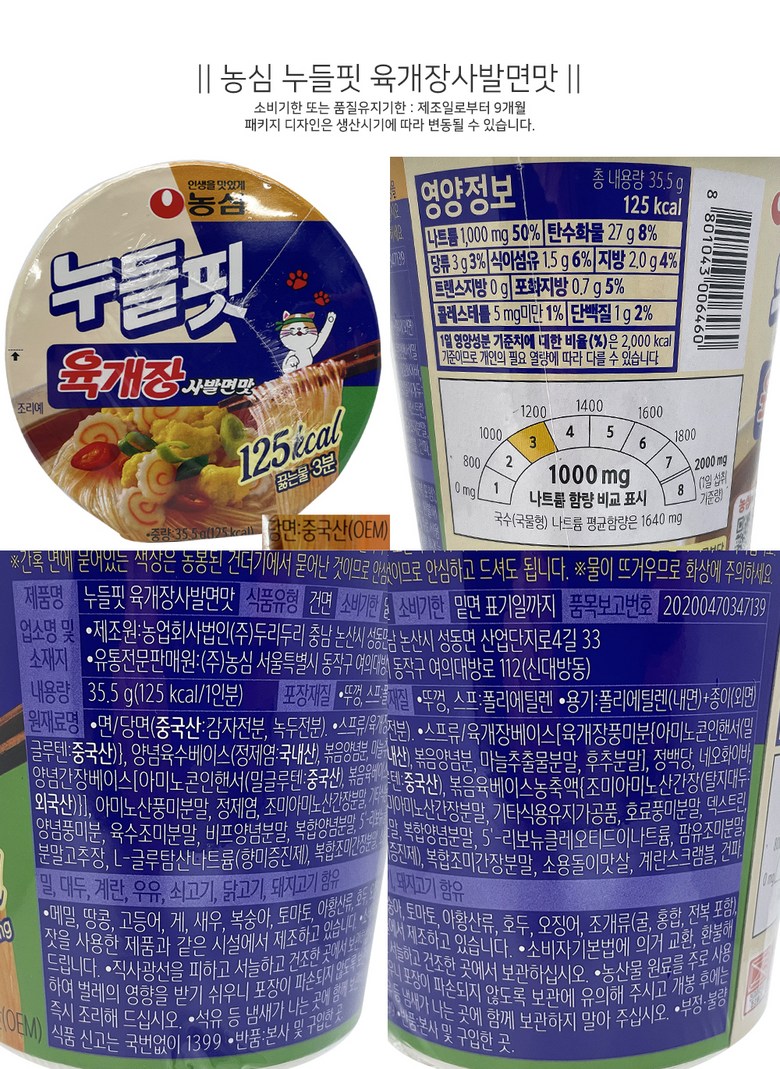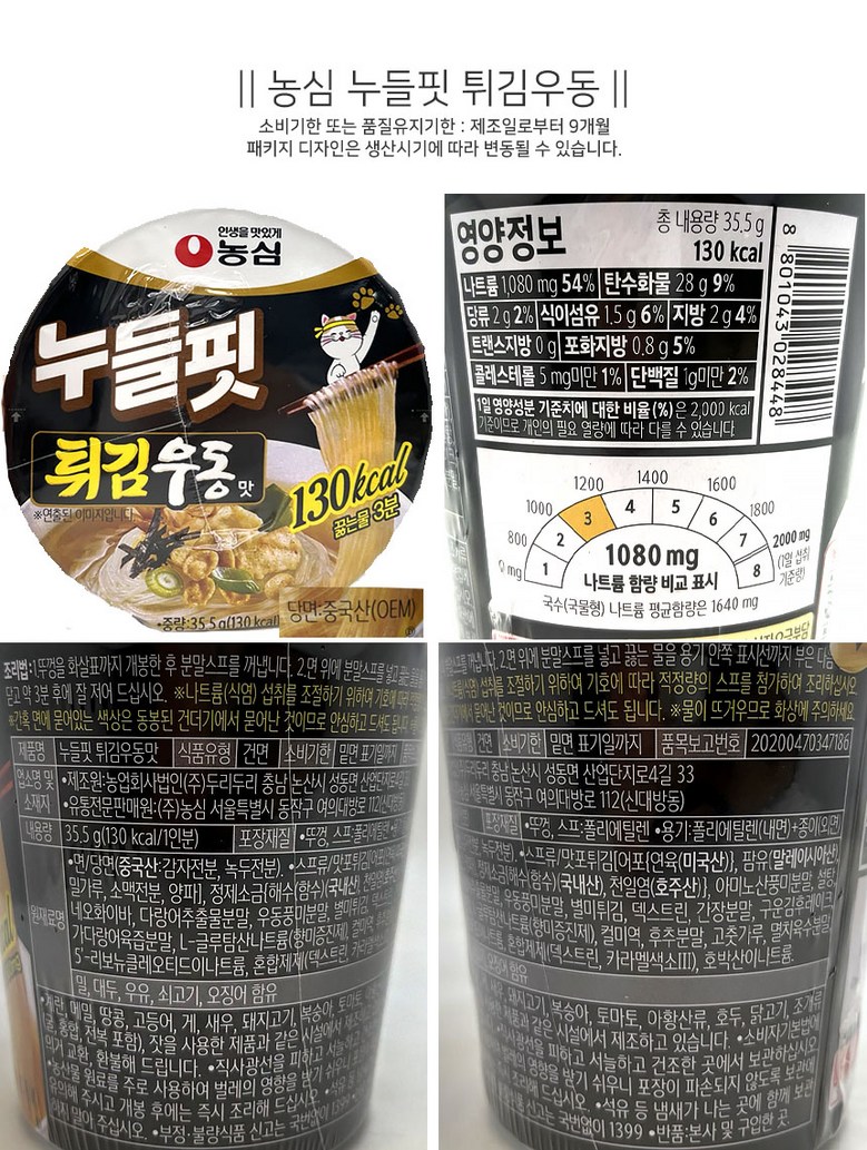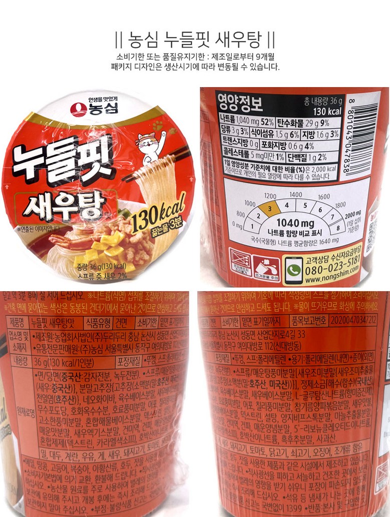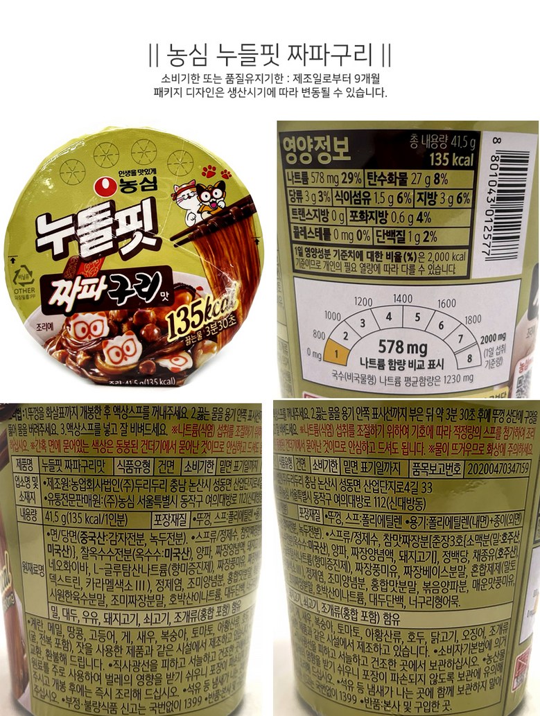 | 생산자 및 소재지 | 컨텐츠 참조 | 제조연월일, 소비기한 또는 품질유지기한 | 업데이트 예정 |