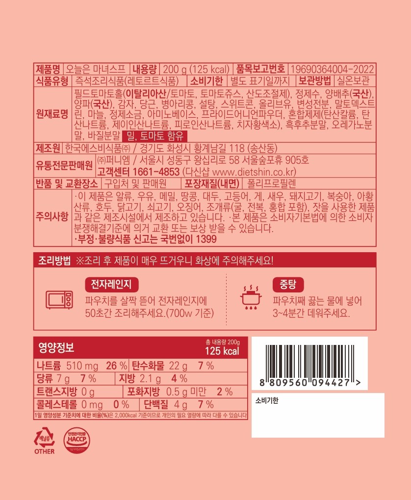 | 포장단위별 내용물의 용량(중량), 수량 | 200g x 5개 | 원재료명 및 함량 | 컨텐츠 참조 |