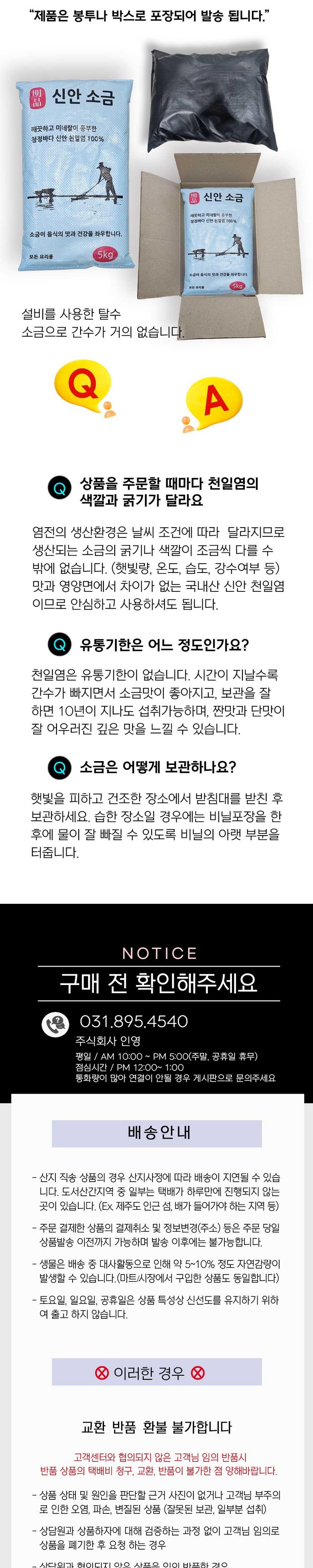 "본 판매 제품은 탈수 천일염으로 간수가 흐르지 않습니다. 하지만 완전 건조 된 제품이 아니기 때문에 간수가 발생할수 있습니다."