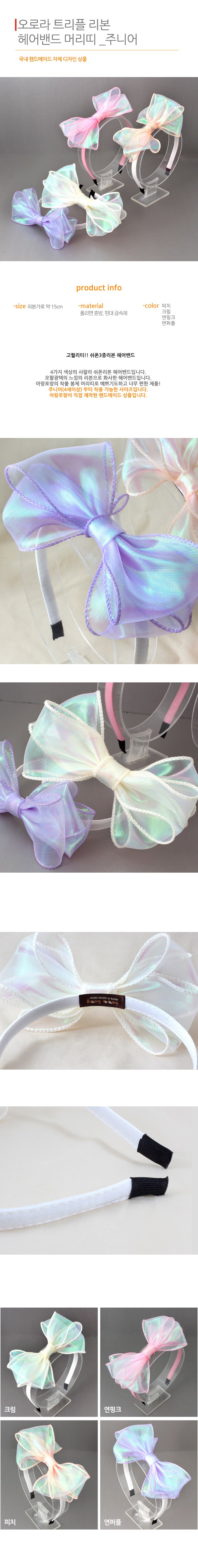 | 품명 및 모델명 | 아랑로랑 여아용 오로라 트리플 리본 헤어밴드 | KC 인증정보 | 유/KC마크 |