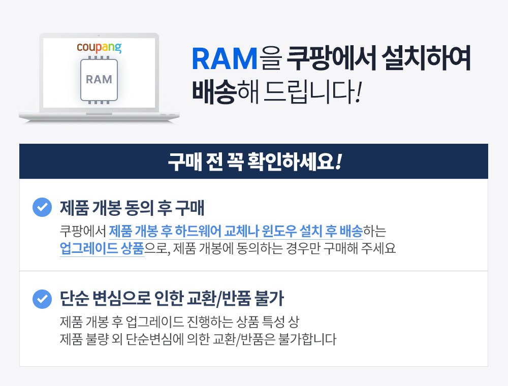 - ㆍ제조사의 사정 (신모델 출시 등) 및 부품 가격 변동 등에 의해 무료 교환/반품으로 요청하는 경우