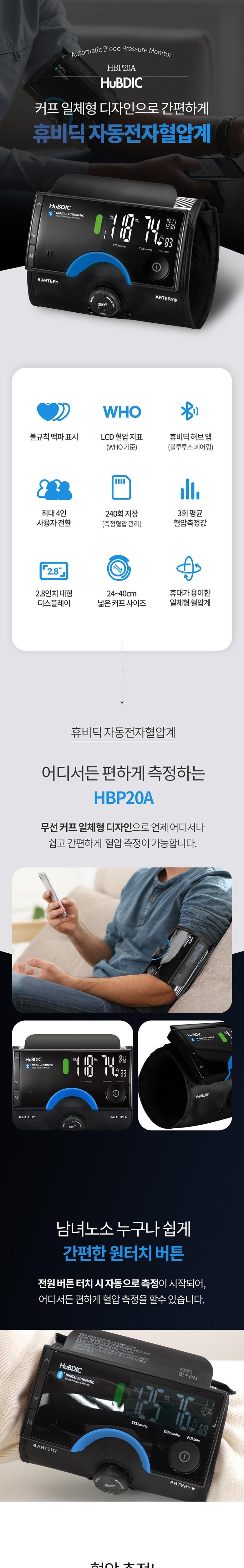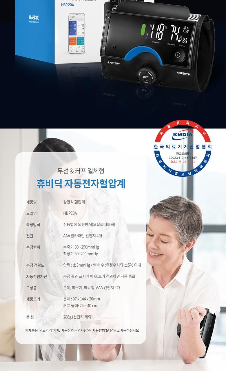 | 품명 및 모델명 | 자동전자혈압계 / HBP20A | 허가∙인증∙신고번호 (의료기기법에 따른 허가∙인증∙신고 대상 의료기기에 한함) | 품목허가번호: 수인23-4653호 |