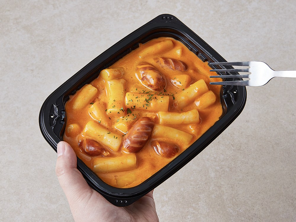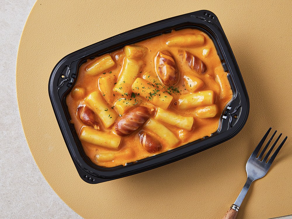 간편하게 즐기는 로제 떡볶이에요. 전자레인지로 간단히 조리해서 드실 수 있어요. 매콤하면서도 부드러운 풍미가 떡과 소시지에 쏙쏙 배어있답니다. 씹으면 씹을수록 매운맛과 함께 고소한 맛이 느껴질 거예요.