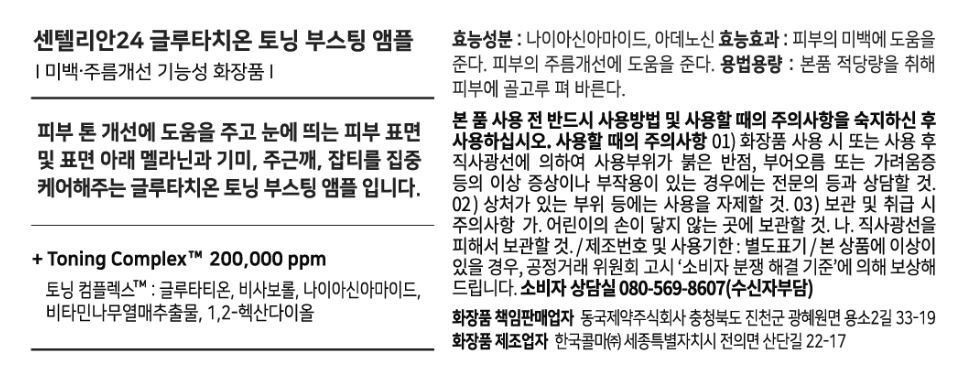 | 품명 및 모델명 | 센텔리안24 더마 펄스 부스터 멀티 샷(실버)/ DKPC24-1 | KC 인증정보 | 본품: R-R-DKp-DKPC24-1, 전지: XU100743-16001O, 어댑터: SU10695-21001, R-R-Kyt-KYT050200BC |