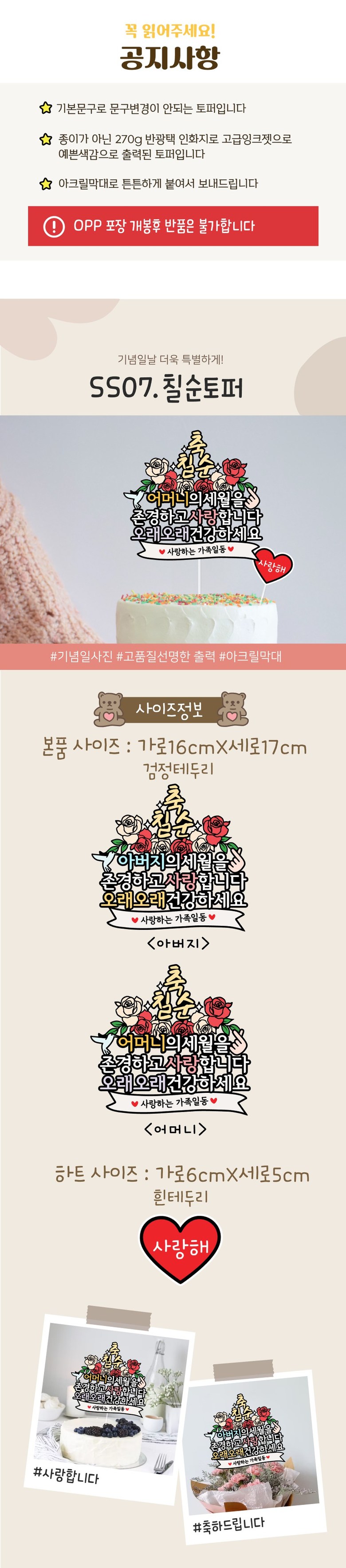 칠순토퍼 칠순파티 생일케이크토퍼, 어머니, 1개