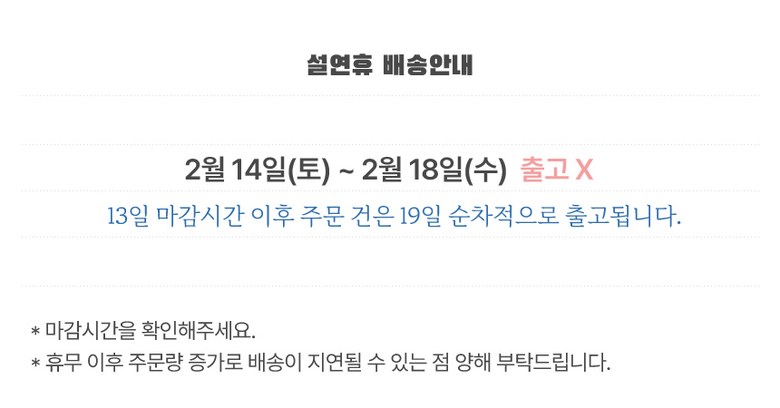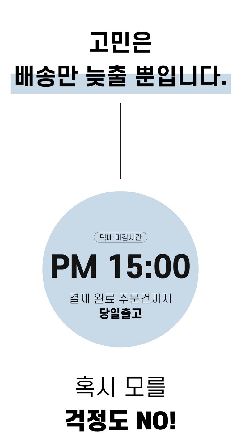 | 배송기간 | ㆍ도서산간 지역 등은 배송에 3-5일이 더 소요될 수 있습니다. - 천재지변, 물량 수급 변동 등 예외적인 사유 발생 시, 다소 지연될 수 있는 점 양해 부탁드립니다. | ||