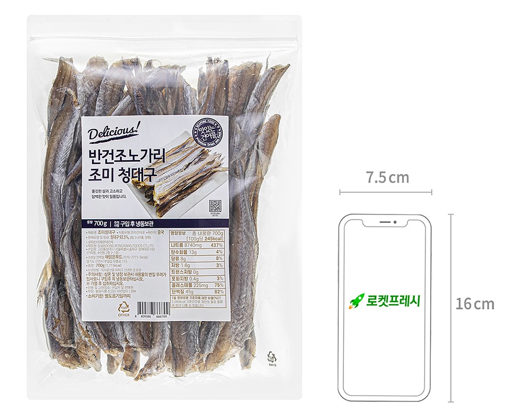 통통한 청대구를 정성껏 말렸어요. 촉촉하면서도 쫄깃한 식감이 매력적이지요. 씹을수록 달짝지근하고 고소한 감칠맛이 배어 나와 자꾸만 손이 간답니다. 고추장이나 마요네즈를 곁들여 맥주 한 잔과 함께 즐겨보세요.
