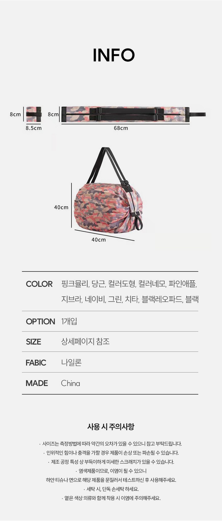 | 품명 및 모델명 | 아코디언 휴대용 접이식 장바구니 시장가방 | 인증/허가 사항 | 해당없음 |