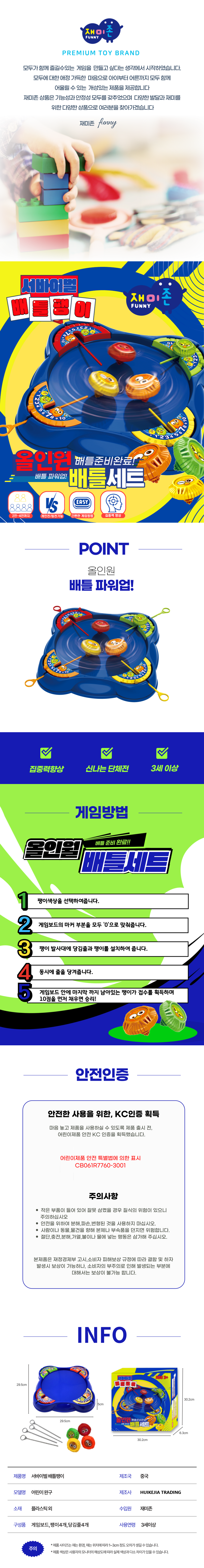 | 품명 및 모델명 | 어린이 완구 / 재미존 서바이벌 배틀팽이 | KC 인증정보 | CB061R7760-3001 |