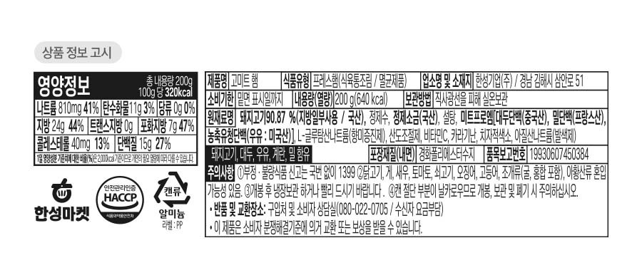 | 포장단위별 내용물의 용량(중량), 수량 | 200g x 5개 | 원재료명 및 함량 | 컨텐츠 참조 |