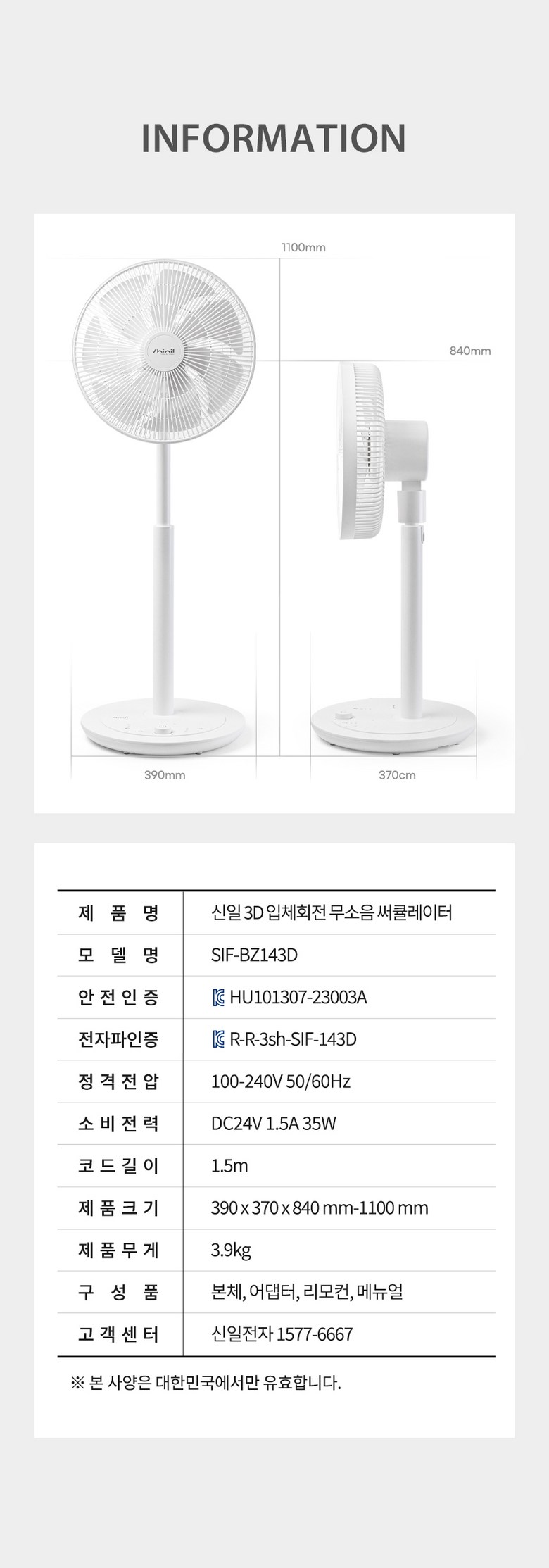 | 품명 및 모델명 | SIF-BZ143D | KC 인증정보 | 상품 상세페이지 참조 |