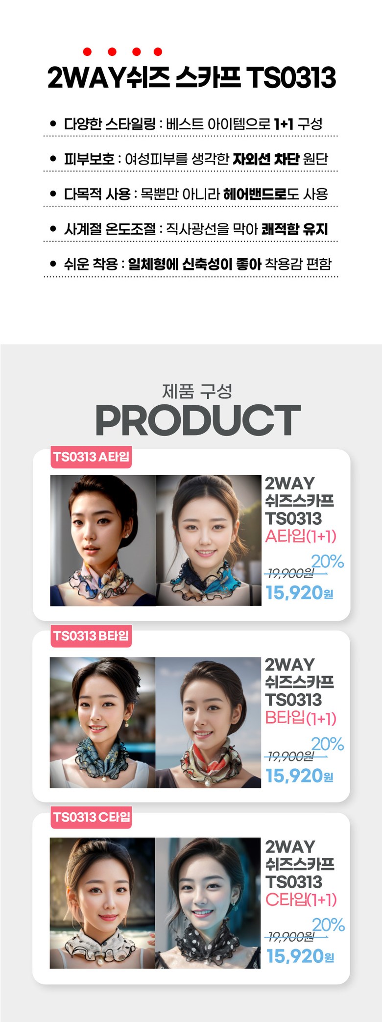 | 품명 및 모델명 | 투율 2WAY 자외선 UV 차단 사계절 스카프 투율 2WAY 자외선 UV 차단 사계절 스카프 | 인증/허가 사항 | 상품 상세페이지 참조 |