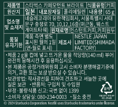 | 포장단위별 내용물의 용량(중량), 수량 | 65g, 1개 | 원재료명 및 함량 | 컨텐츠 참조 |