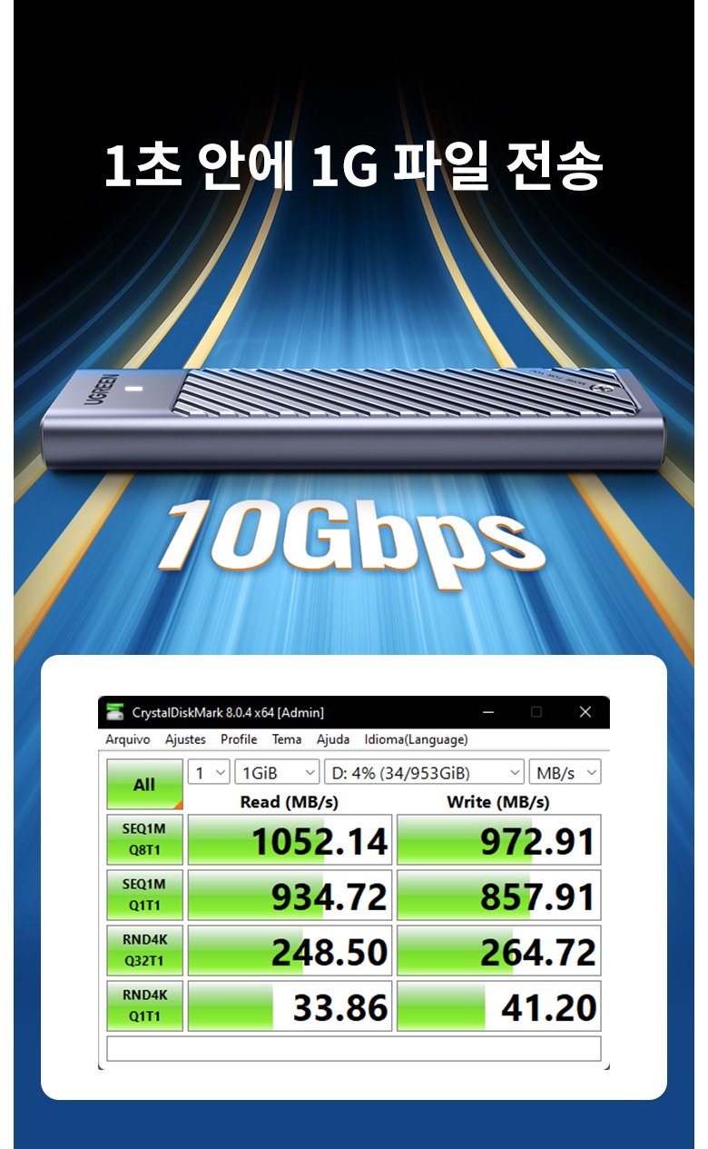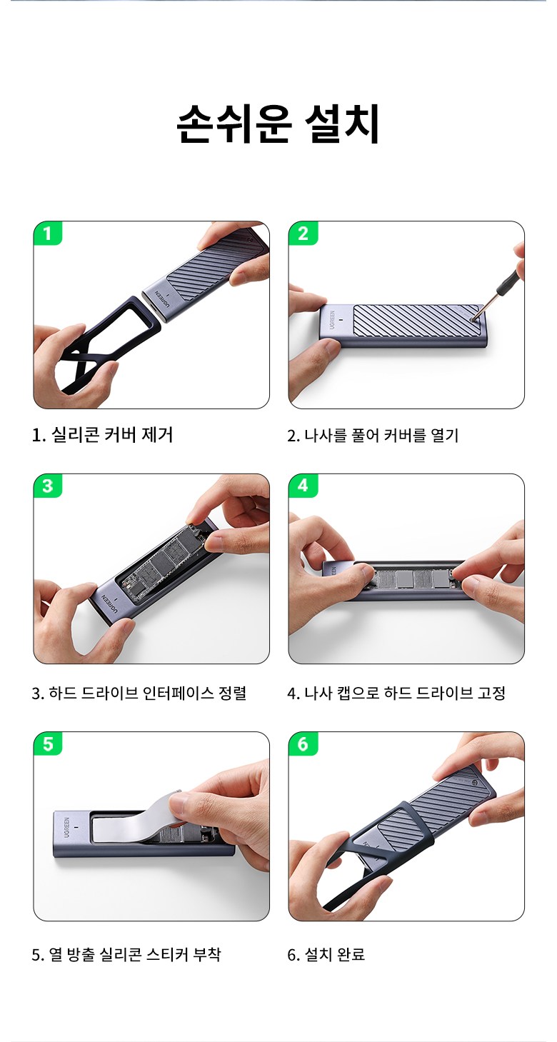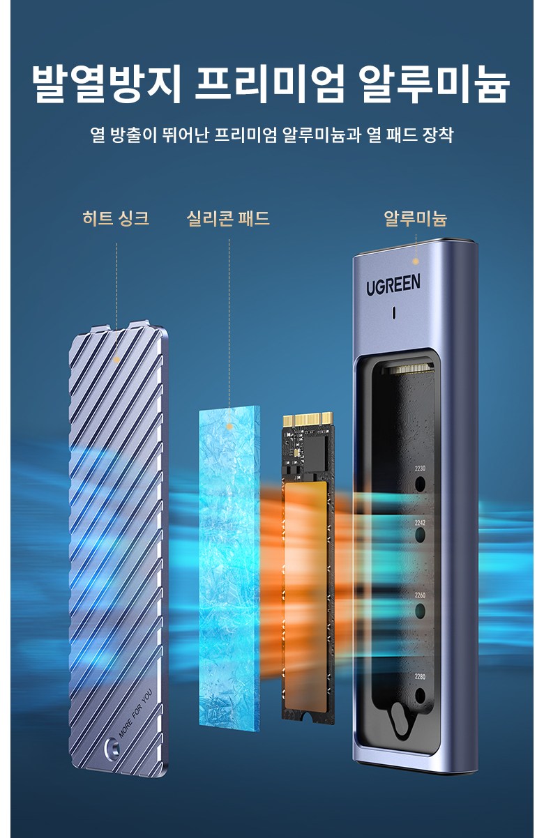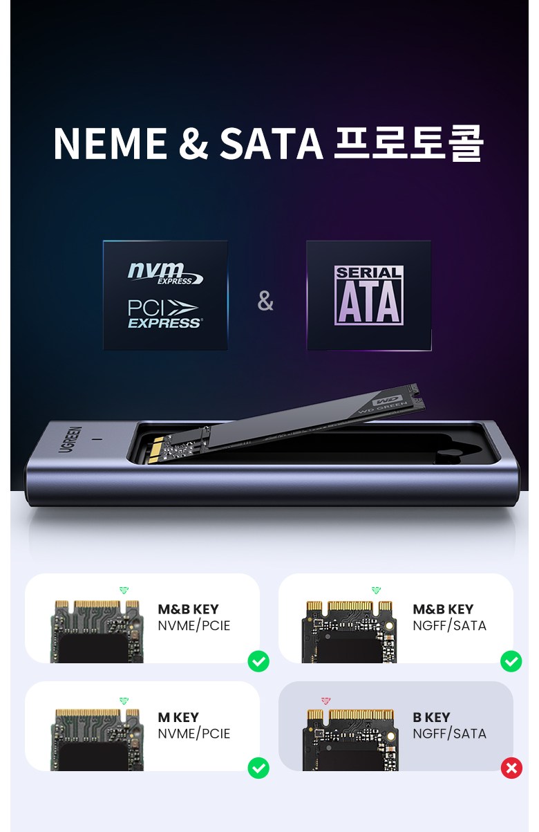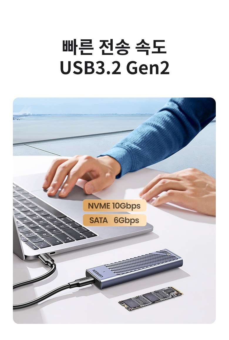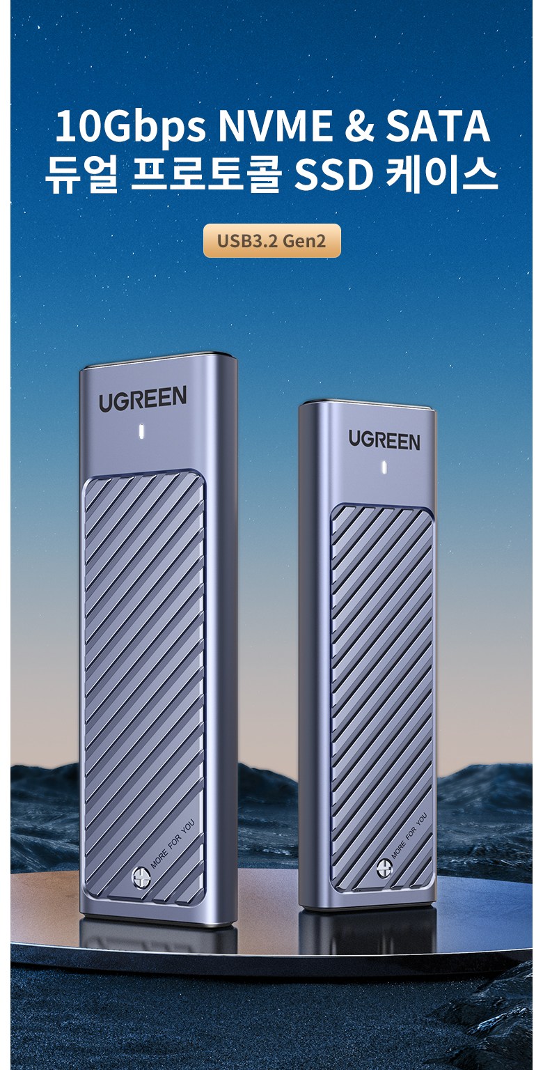UGREEN 유그린 C타입 NVMe & SATA 듀얼 프로토콜 SSD 외장하드 케이스 알루미늄 재질 10Gbps SATA M.2 외장 SSD 케이스
