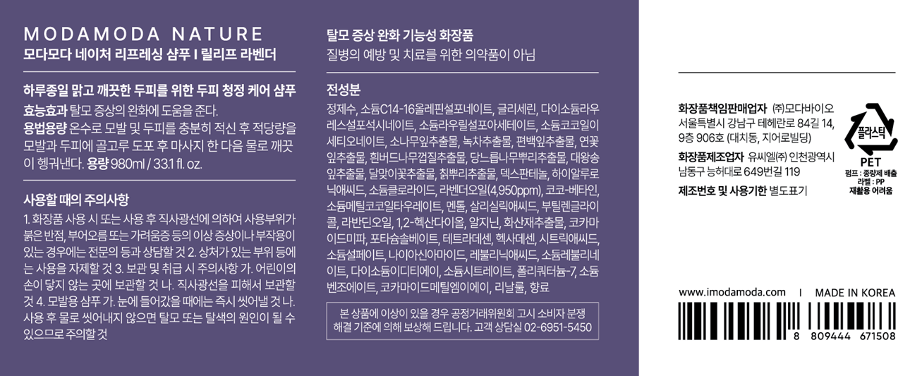 | 용량(중량) | 980ml | 제품 주요 사양 | 모든 모발용 |