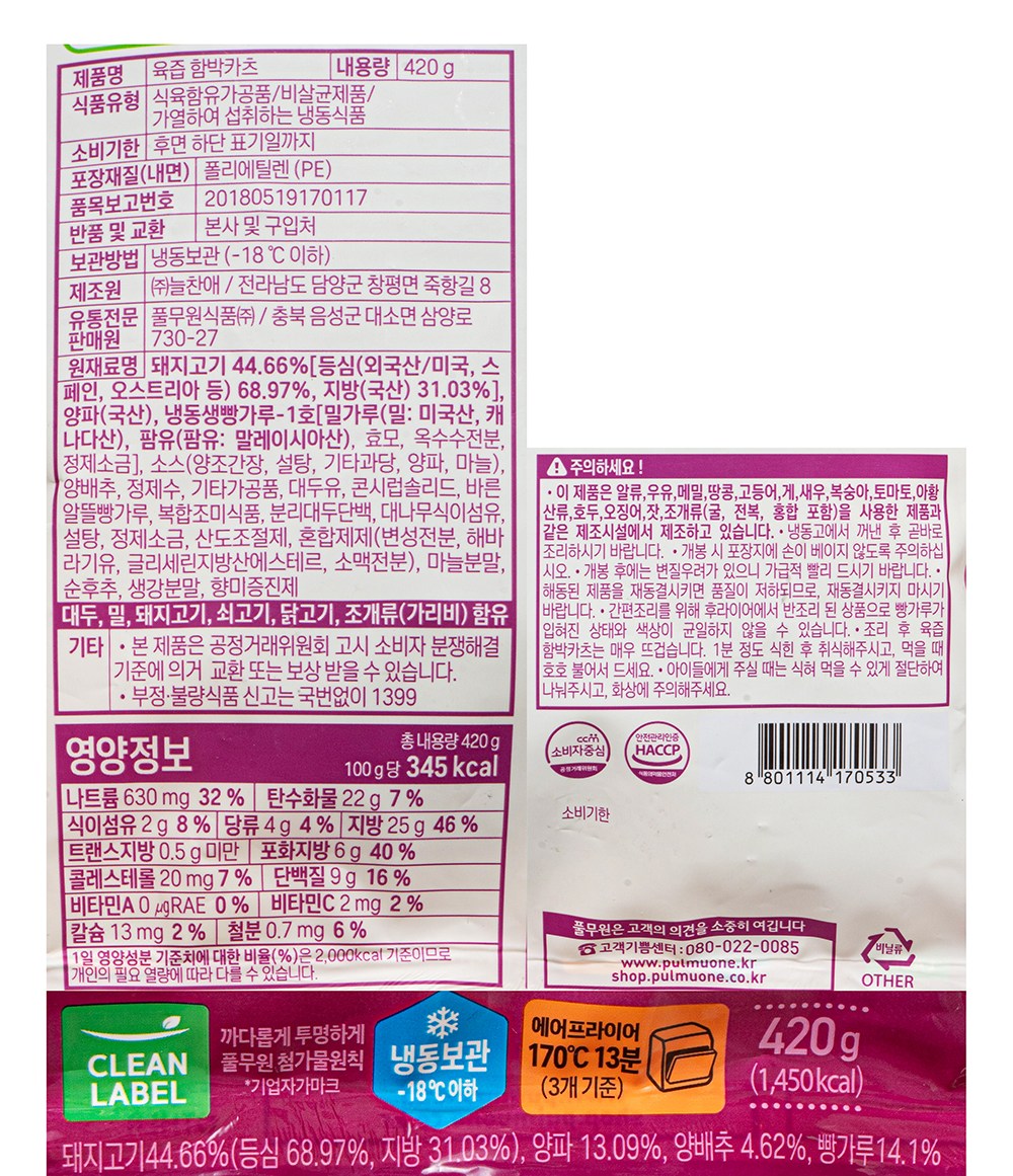| 생산자 및 소재지 | 컨텐츠 참조 | 제조연월일, 소비기한 또는 품질유지기한 | 업데이트 예정 |