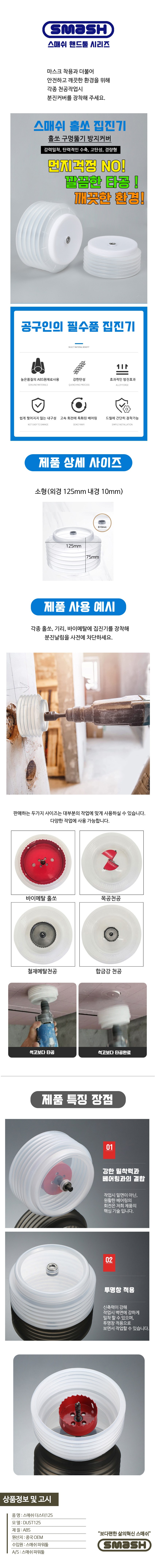 | 품명 및 모델명 | 스매쉬 홀쏘 집진기 125mm | 인증/허가 사항 | 해당없음 |